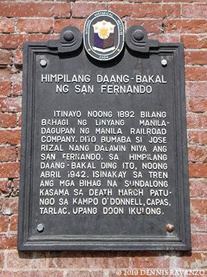 Brief history from the historical marker: At this railroad station of San Fernando, the Filipino and American prisoners of war who had been marched all the way from Bataan to Pampanga, in one of the ghastliest forced marches in history, were loaded like cattle on boxcars where, because every compartment was packed to the limit, many suffocated or were crushed to death during the trip to Capas.